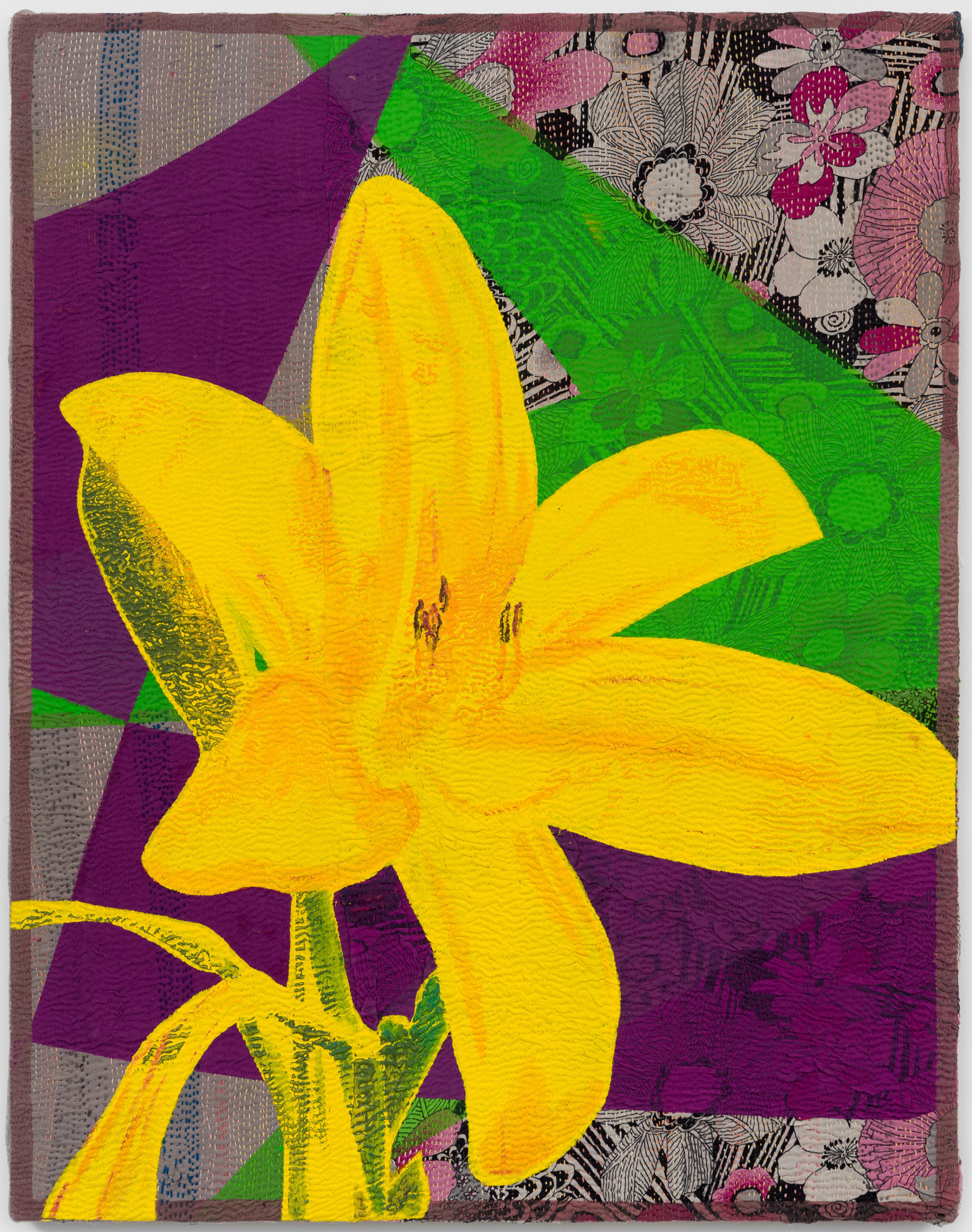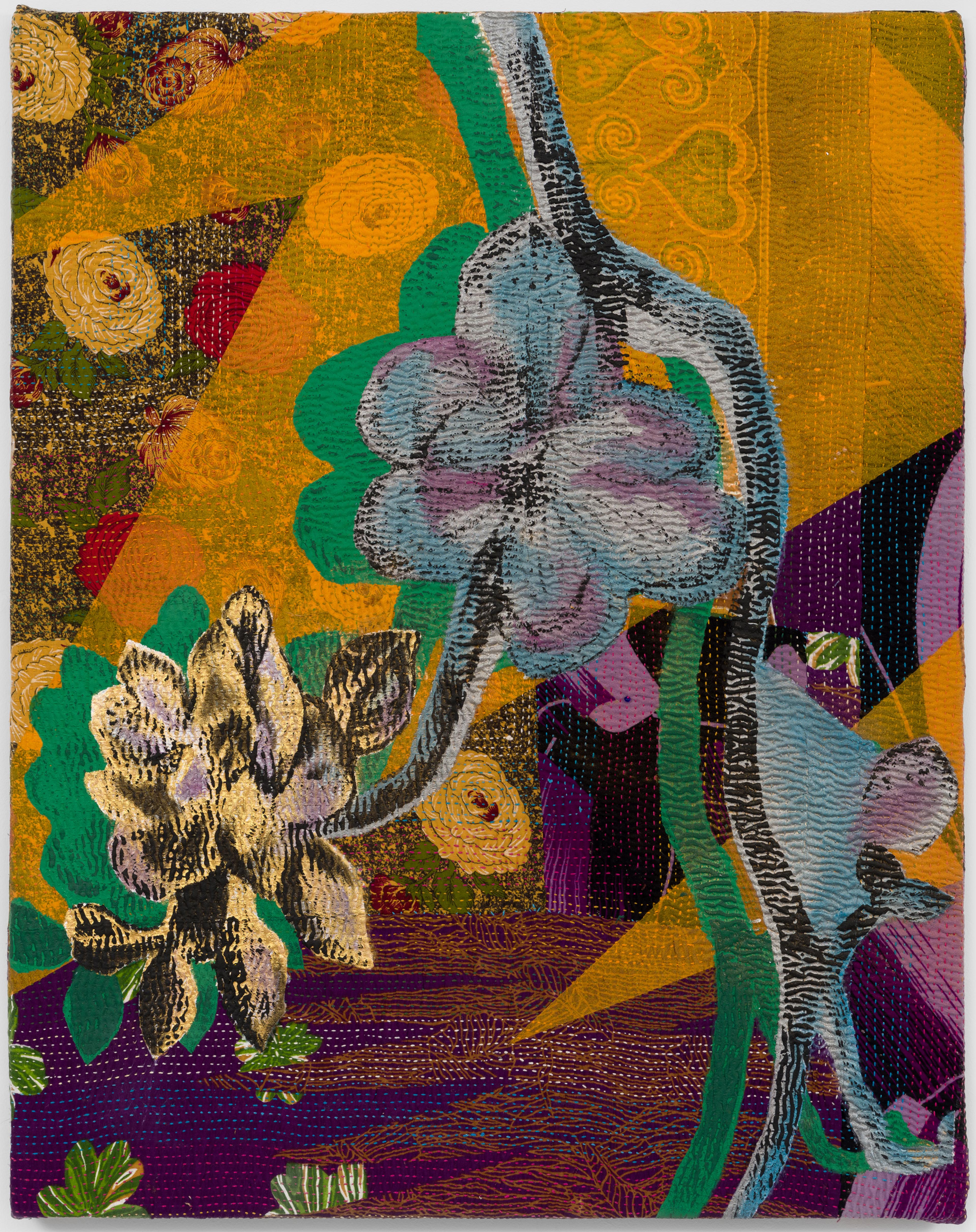 Patterned Flowers, 2025. Acrylic on vintage textile,