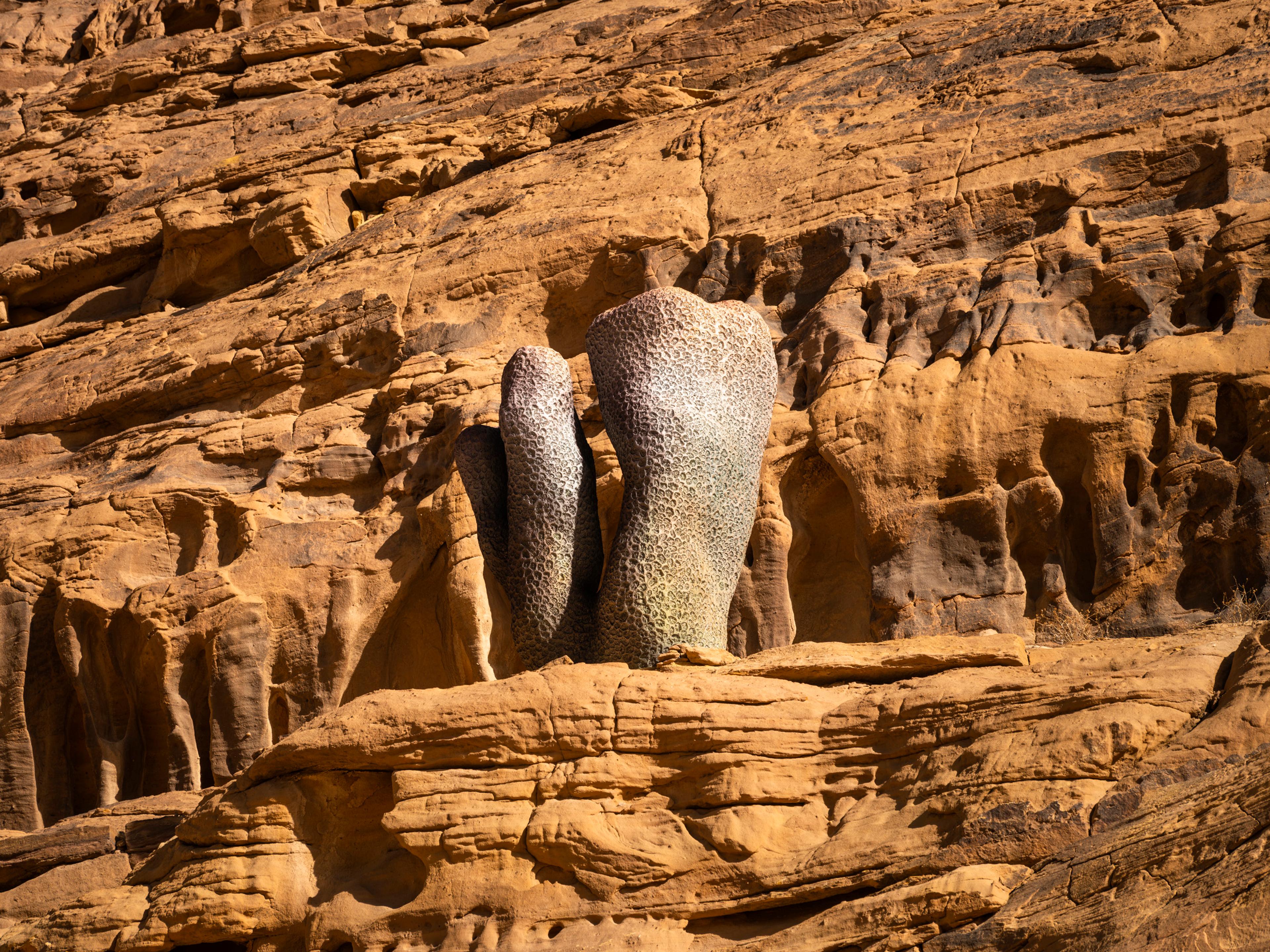 With Coral Alchemy I (Dipsastrea Speciosa) and Coral Alchemy II (Porites Columnaris) Shezad Dawood brings the ocean to the AlUla desert floor, exploring the ancient geo-biological relationship between the two landscapes.