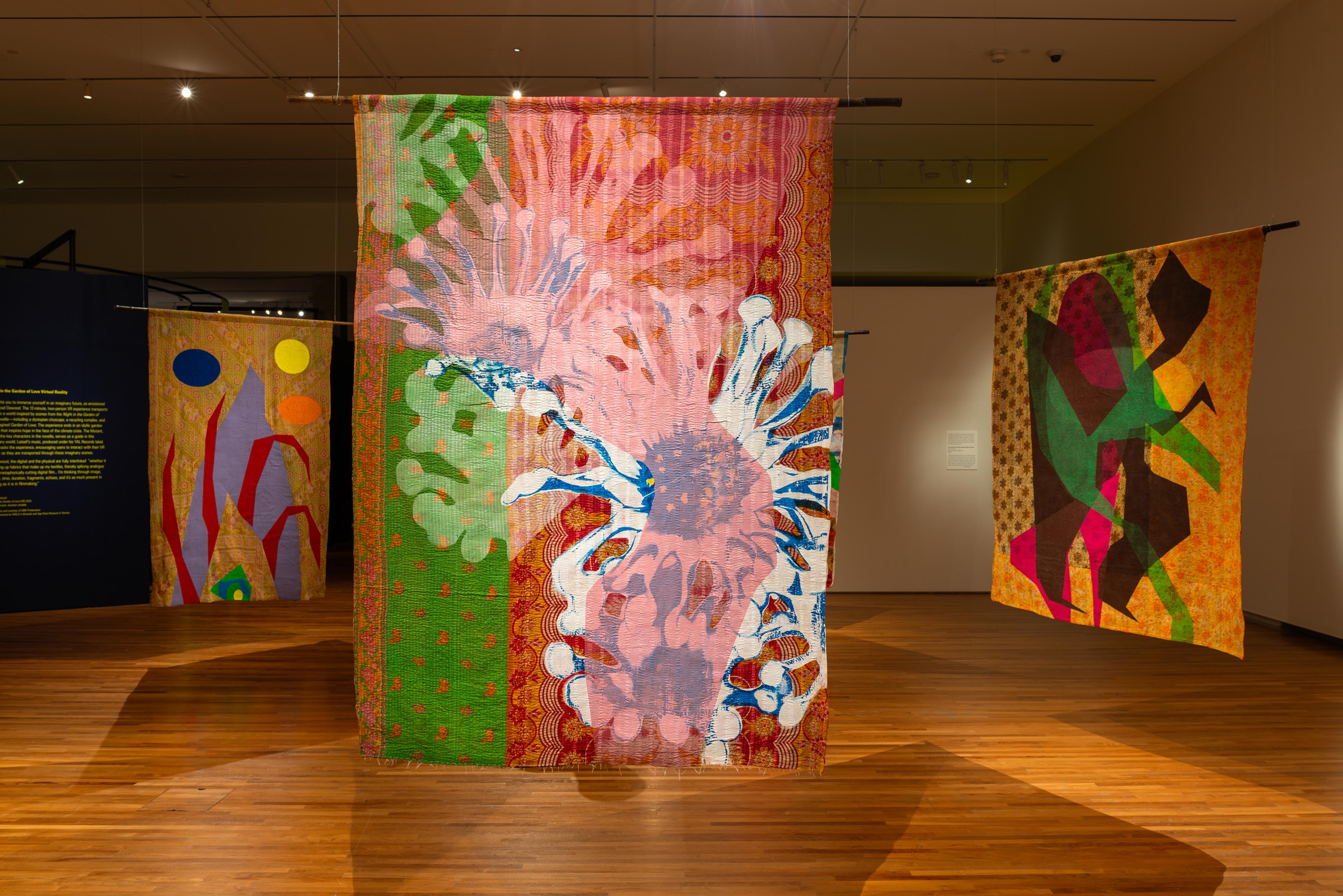 This call-and-response between these gifted practitioners is reminiscent of exchanges in musical improvisation. Environmentalism is positioned as a search for solutions that take place in the community and through creativity. This is expanded through a VR environment, textile paintings, a specially created scent, algorithmically generated plants and a new autophysiopsychic musical score performed by Lateef's former collaborators and students.
