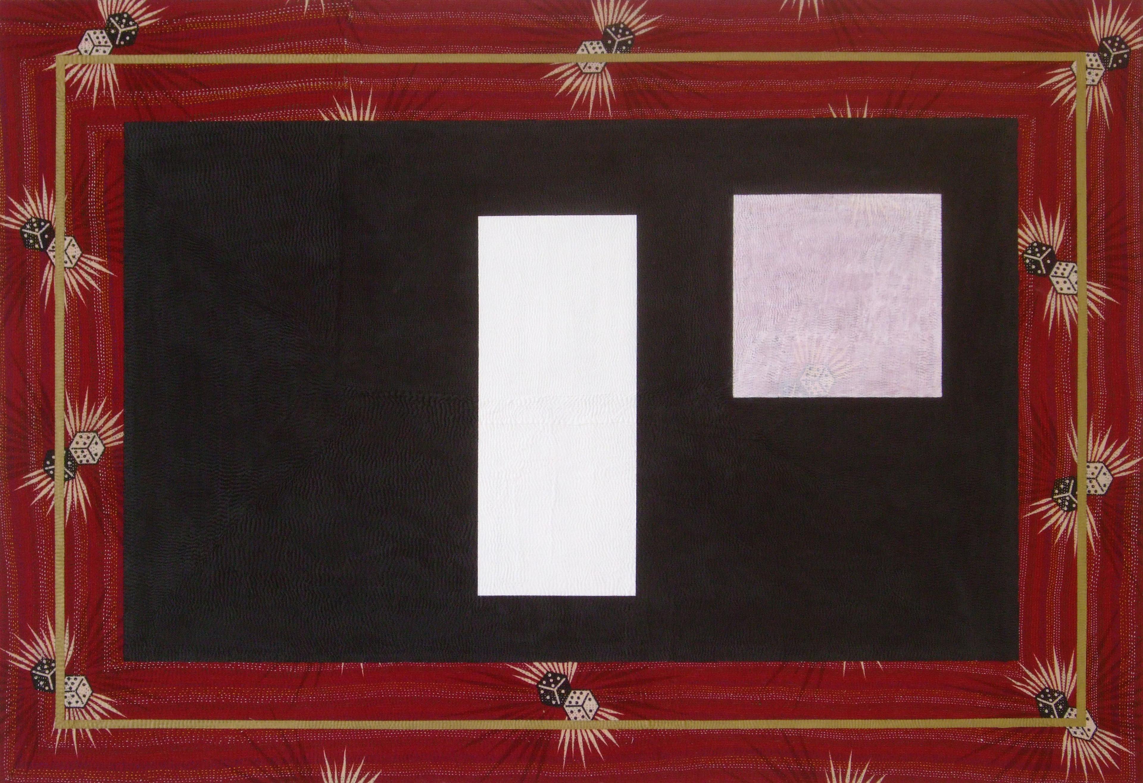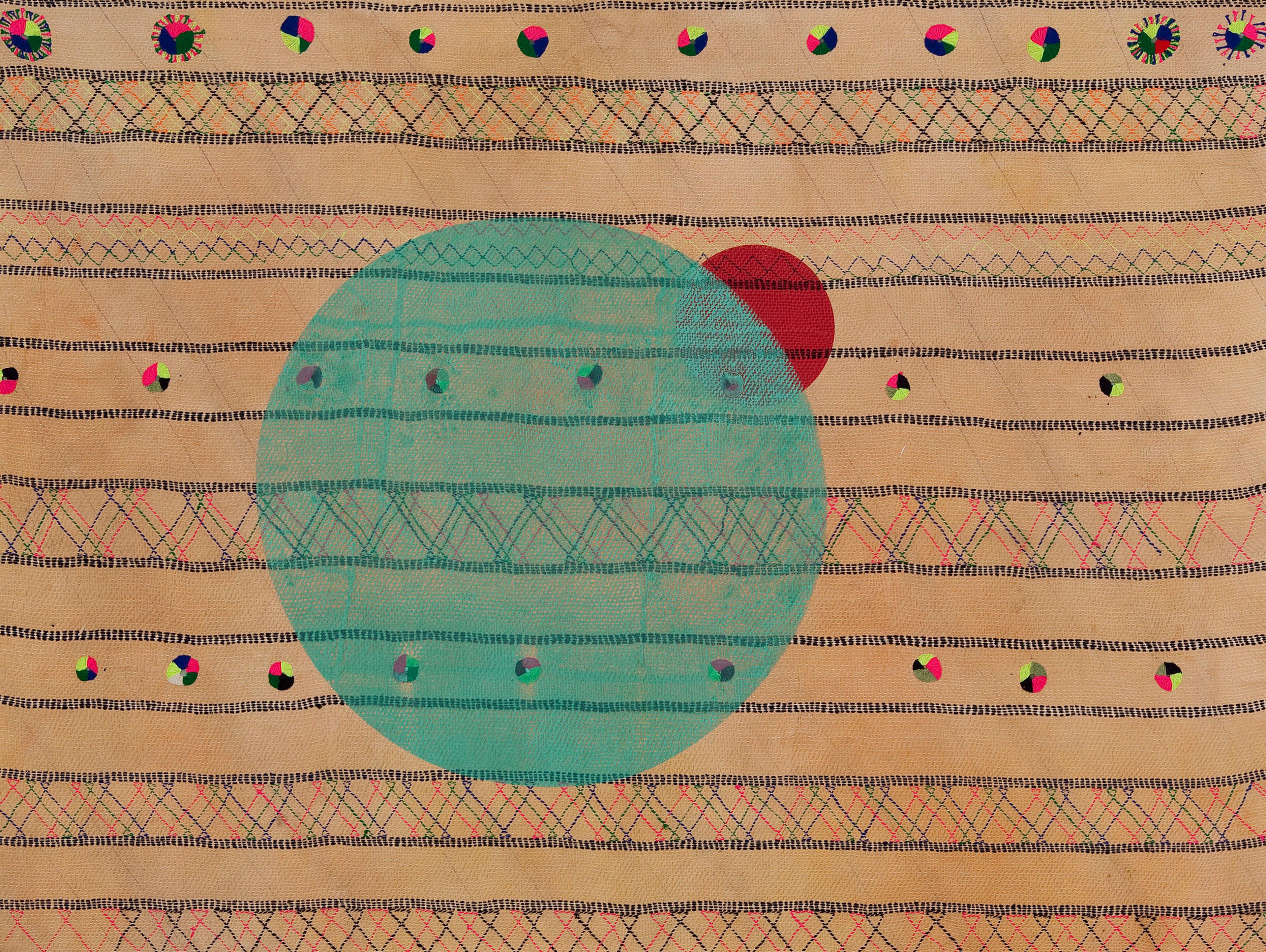 YTR 1, 2010. Acrylic on vintage textile, 125 × 165 cm.
